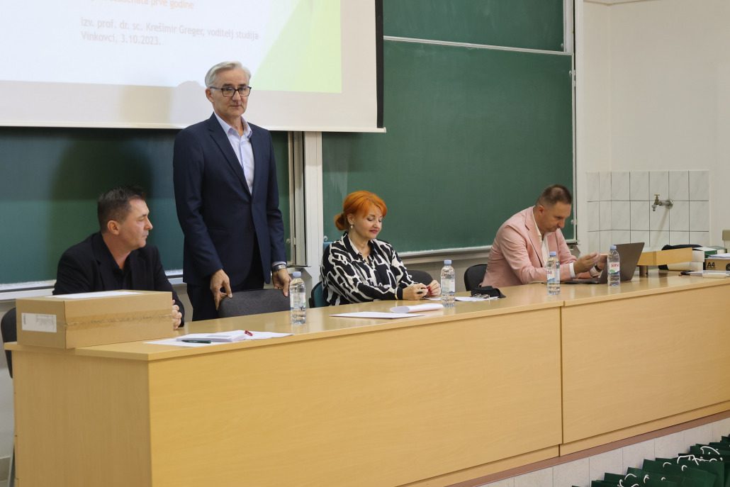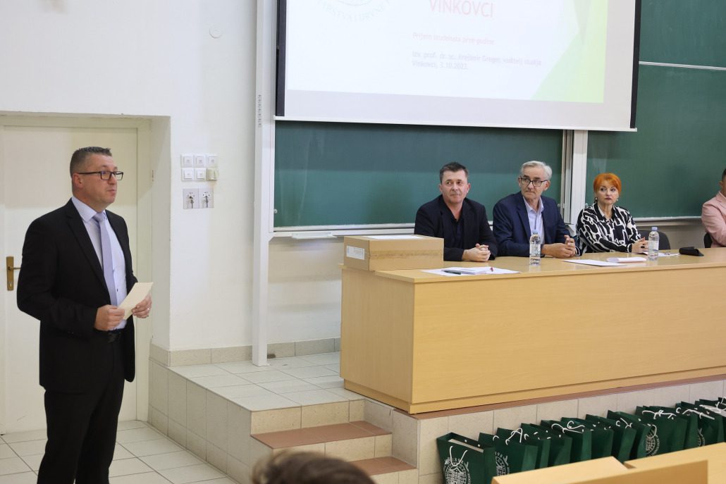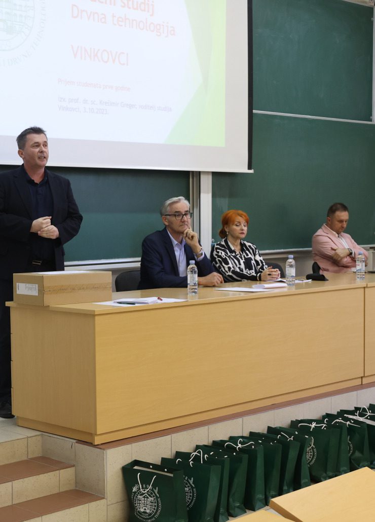Brucoše su na početku nastave pozdravili i zaželili im dobrodošlicu predstavnici Fakulteta šumarstva i drvne tehnologije Sveučilišta u Zagrebu prodekan, izv. prof. dr. sc. Alan Antonović i voditelj studija, doc. dr. sc. Krešimir Greger, pročelnica Upravnog odjela za obrazovanje i društvene djelatnosti Vukovarsko-srijemske županije doc. dr. sc. Jadranka Mustapić-Karlić, pročelnik Upravnog odjela za poslove gradonačelnika Grada Vinkovaca Gabrijel Šokičić i direktor Centra kompetencija dr. sc. Ivan Ambroš.