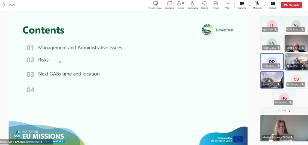 With the project entering its second half, the GAB meeting held on November 27 and 28, 2025, was dedicated to the transition toward the exploitation and replication phase of the solutions. As part of the GAB, each partner presented their accomplishments so far, thereby providing a detailed insight into the status and quality of the project's implementation. In addition to reviewing the status of the Work Packages, discussions focused on current and upcoming challenges, as well as the alignment of implementation across the three main demonstrator areas: Middle Danube, Lower Danube, and the Danube Delta.