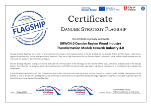 The meeting was attended by representatives of the Competence Centre Ltd, where they were awarded with a certificate for the Strategy Flagship Project - the project DRWO4.0 – Danube Region Wood Industry Transformation Model towards Industry 4.0, where the Competence Centre Ltd is leading partner.